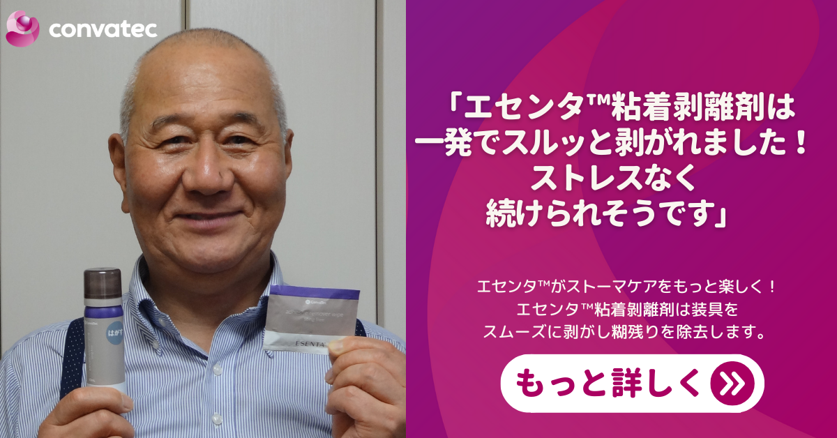 私の場合、肌が強いので“足立さんには必要ないか”と笑って言ってました。しかし、年齢とともに、肌も弱くなっていくことが気になっていくので、装具交換時の肌の負担を減らすために、剥離剤を使ったいきたいです。何よりも習慣化できる手軽さが気に入りました。