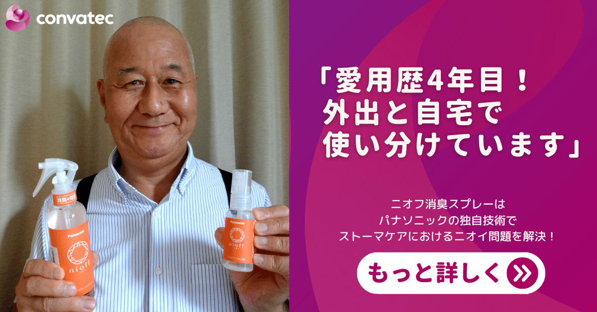 術後まもなく病院でのストーマ装具のカウンセリング時に、勧められたのをきっかで使用を始めました。それから、現在までずっと愛用しています。ニオイをシャットアウトしてくれる実感があり満足しているので、ずっと愛用しています。