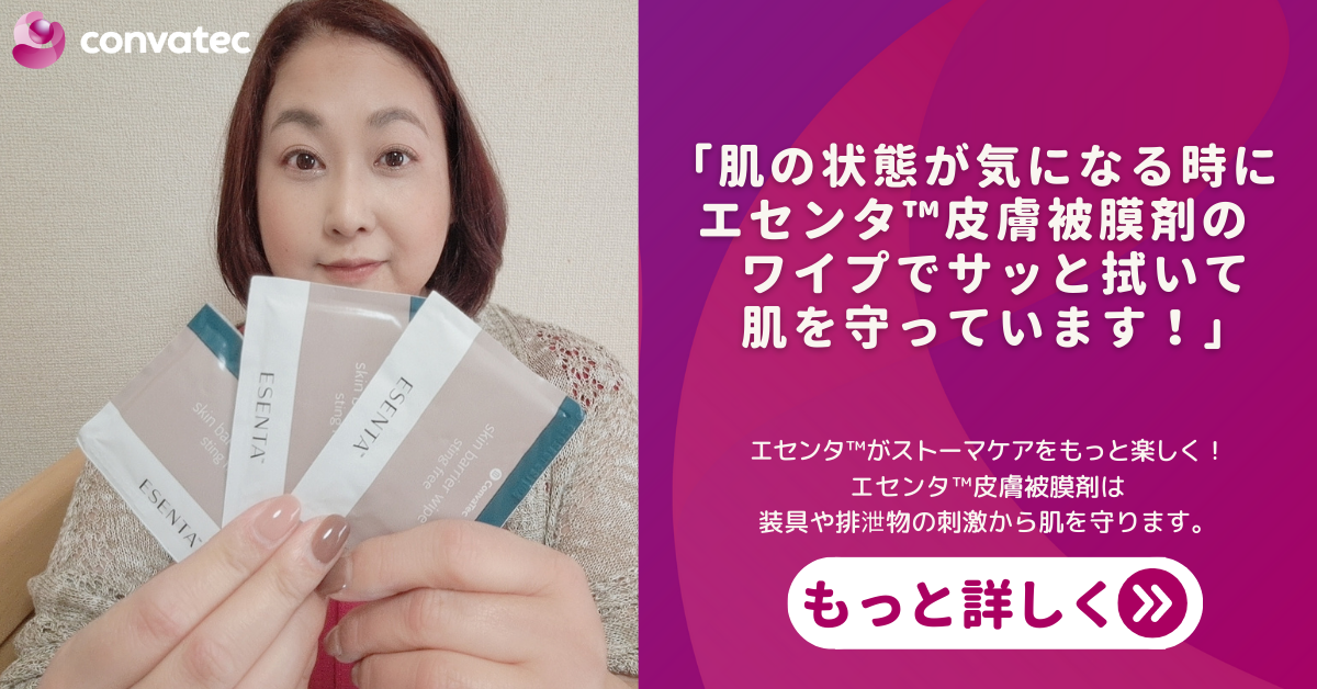 スプレーもワイプもですが、エセンタ™皮膚被膜剤は、乾くのが速いのがいいですね。あまり待たずに装具を装着できるのはありがたいです。使用感については、サラっとしているけど、膜の張っている感じがあるので、しっかり膜ができているなと実感できます。ワイプは薄い膜、スプレーはしっかりした濃い膜が作られている印象があります。